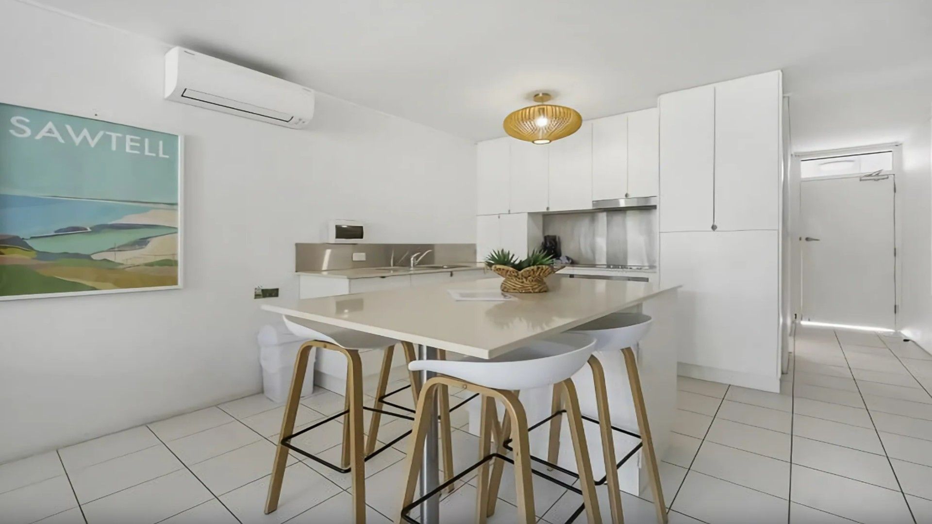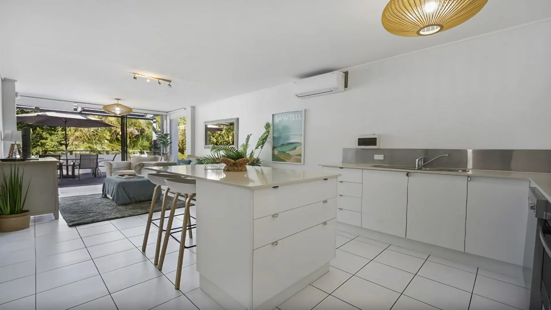 Step inside and you’ll find a beautifully appointed, stone-topped kitchen with stainless steel appliances and a dishwasher — perfect for those who love to cook while on holiday. The open-plan living area offers a comfortable lounge with ample seating, air conditioning, Wi-Fi, and a large Smart TV, making it easy to unwind after a day at the beach.