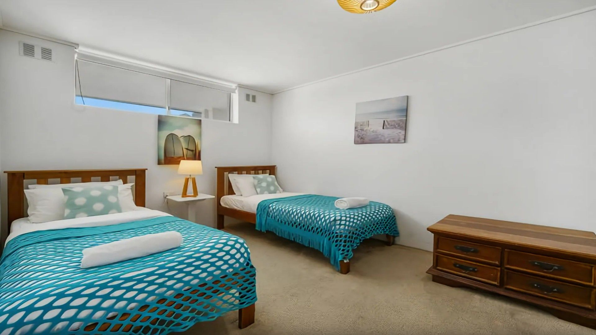 • Second Bedroom: Two single beds with built-in robes